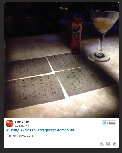Catherine had a note in her phone from watching the show HEAT SEEKERS many moons before to “try the bloody mary of doom @ Mad Donnas”. So after a hard work day in the RV, we went there for dinner. Upon walking in, I heard music playing upstairs and inquired to the hostess. “Oh, that’s Drag BINGO.” I was like OMG how did we stumble upon the only gay bar in Nashville by “accident”??! And up we went.