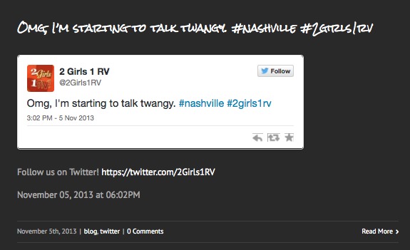 This time last year we had driven to Nashville for the first time. Before we arrived, we had made a pit-stop in a Walmart parking lot so Catherine could have a work meeting and I, an interview that was scheduled with OPEN TO HOPE, an organization that supports grief workers. I saw in the back of my Kia Soul, which was on the tow dolly behind the RV while I was being interviewed about our journey and my blog, losingyourparents.com. (You can listen to that interview, here.)